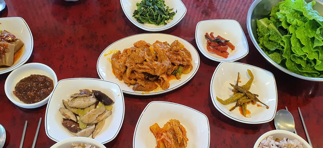 포차라는 타이틀처럼 원래는 술과 안주를 파는 곳인데, 코로나 19로 점심장사만 한다. 그것도 처음엔 뷔폐식으로 하다가 코로나 19 사회적 거리두기 2단계 시행으로 "한상차림"으로 바뀌었다. 오히려 더 편하다. 메뉴 고를일도 없고 거의 자리에 앉자마자 식사가 나오기 때문에 시간도 절약된다.
