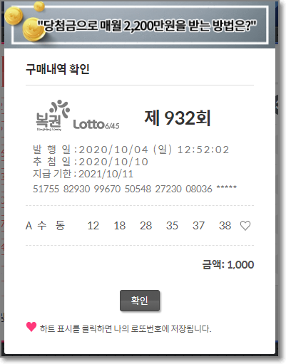 동행 복권에 들어가 해당 번호로 구매했다.