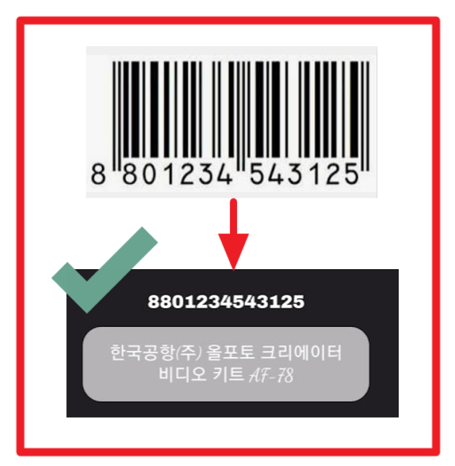 koreannet 사이트에서 바코드를 입력하고 상품정보를 찾는다.