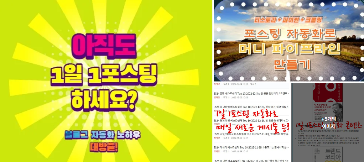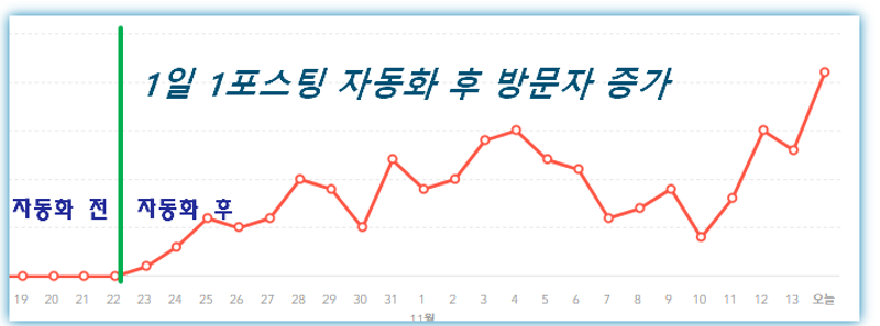 #필자는 자동화 시스템 구축 후 블로그 방문자가 무려 10배 이상 증가했습니다. 매 요일마다 서로 다른 주제로 수집한 정보를 게시합니다.