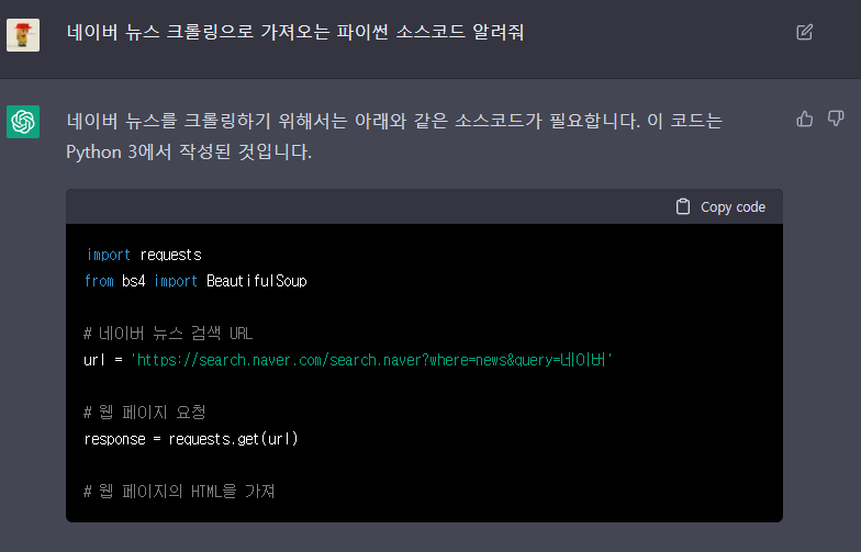 단답형 답변이 나올 줄 알았는데 꽤 구체적이다. 심지어 코딩도 가능하다.