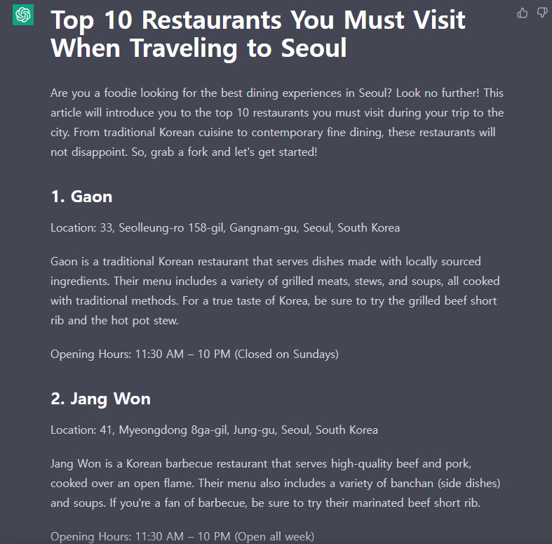- Write the theme of your blog as "Top 10 Restaurants you must visit when traveling to Seoul".