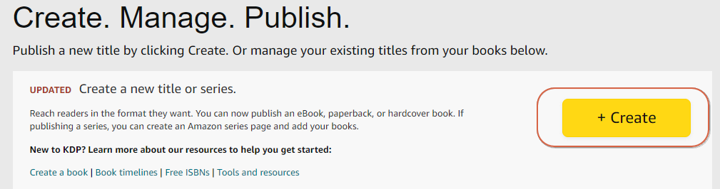 회원가입을 하고 출판을 위해 "Create" 버튼을 클릭합니다.