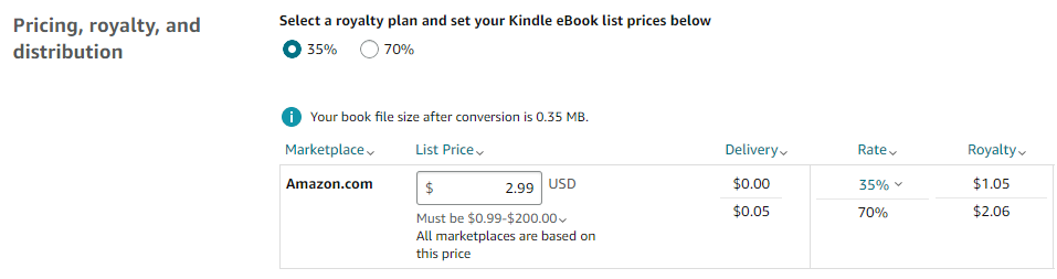 마지막으로 책 가격을 설정합니다. 2.99달러로 책정했어요. 사실 ChatGPT가 내용을 만들긴 했지만, 실제 책 출판까지 약간의 노가다 작업이 들어가더군요. ChatGPT가 실수한 거 찾아내 고치고, 마크다운 포맷이 정확하게 워드에 반영되지 않아 수작업도 했어요.