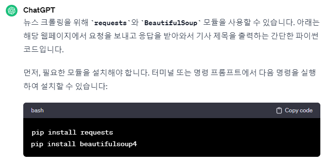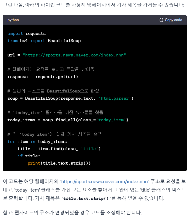 chatgpt에 네이버 뉴스 기사 크롤링을 시켰는데, 정말 찰떡같이 잘 만드네요.