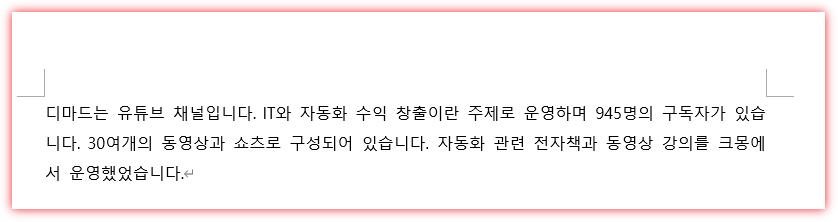 GPT: 디마드는 IT와 자동화 수익 창출에 관한 주제로 유튜브 채널을 운영하고 있으며 945명의 구독자를 보유하고 있습니다. 30여개의 동영상과 쇼츠로 구성되어 있으며 이전에는 자동화 관련 전자책과 동영상 강의를 크몽에서 운영했던 적이 있습니다.