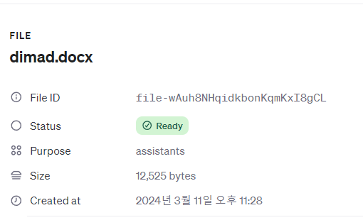 4. Assistants 만들기 : 2번에 생성한 file.id를 입력한다.