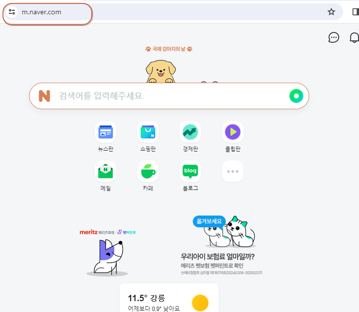 - 안드로이드 모바일 헤더 : 일반 url로 코딩을 해도 모바일 URL로 실행된다. .