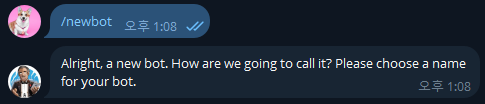 /newbot 입력하면 나의 bot을 만들 수 있다.