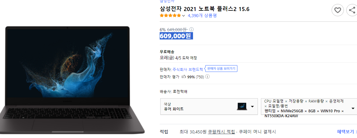 - "가성비 갑! 삼성전자 2021 노트북 플러스2 15.6 최저가 검토"