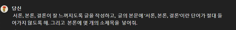 서론, 본론, 결론 단어는 빼라고 했음에도 들어가 있어서, 다시 답변을 요청했다. 한층 전문적이고 있어 보인다.