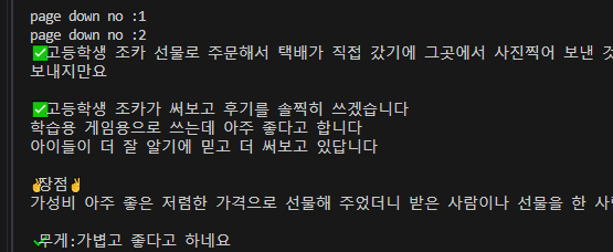 다시 시간 간격을 두고 리뷰를 읽어와 출력했다.