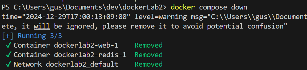 flask, redis 뿐만 아니라 Network도 모두 제거된다. 따라서 방문자 카운트가 모두 초기화되어 웹 사이트 접속하면 방문 카운트가 1이 된다.